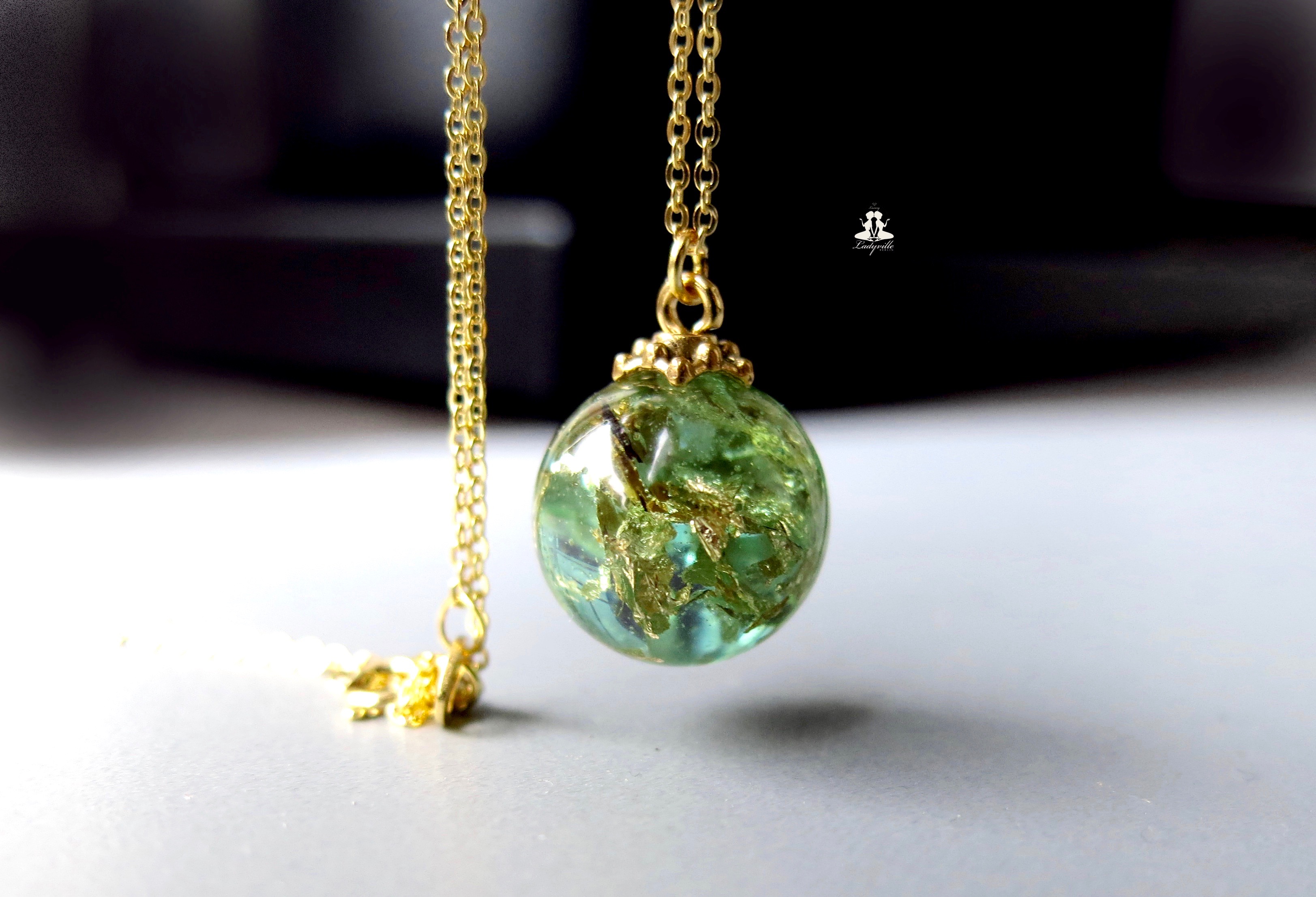 Wunderschöne Kette mit vielen kleinen Blattgoldelementen, fein in türkis eingefärbten Gießharz verewigt und mit einer Sterling Silber Kette zum Schmuckstück verarbeitet.