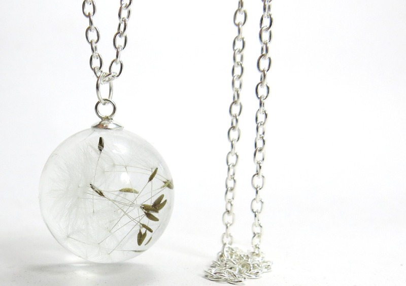 Wundervolle Kette mit vielen echten getrockneten Pusteblumen in einer Glaskugel für die Ewigkeit festgehalten.