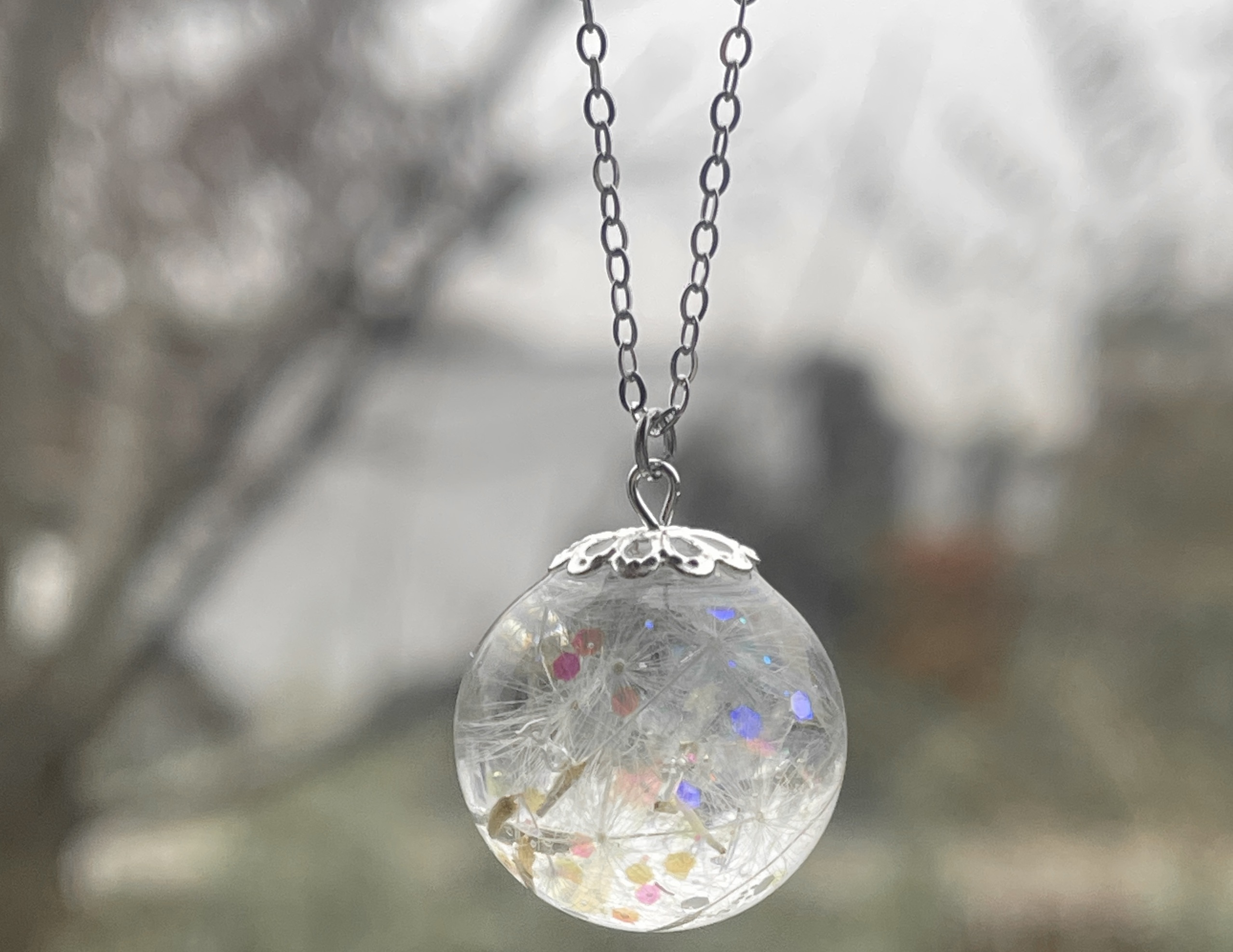 925 Sterling Kette, Glitzer u. Pusteblumen
