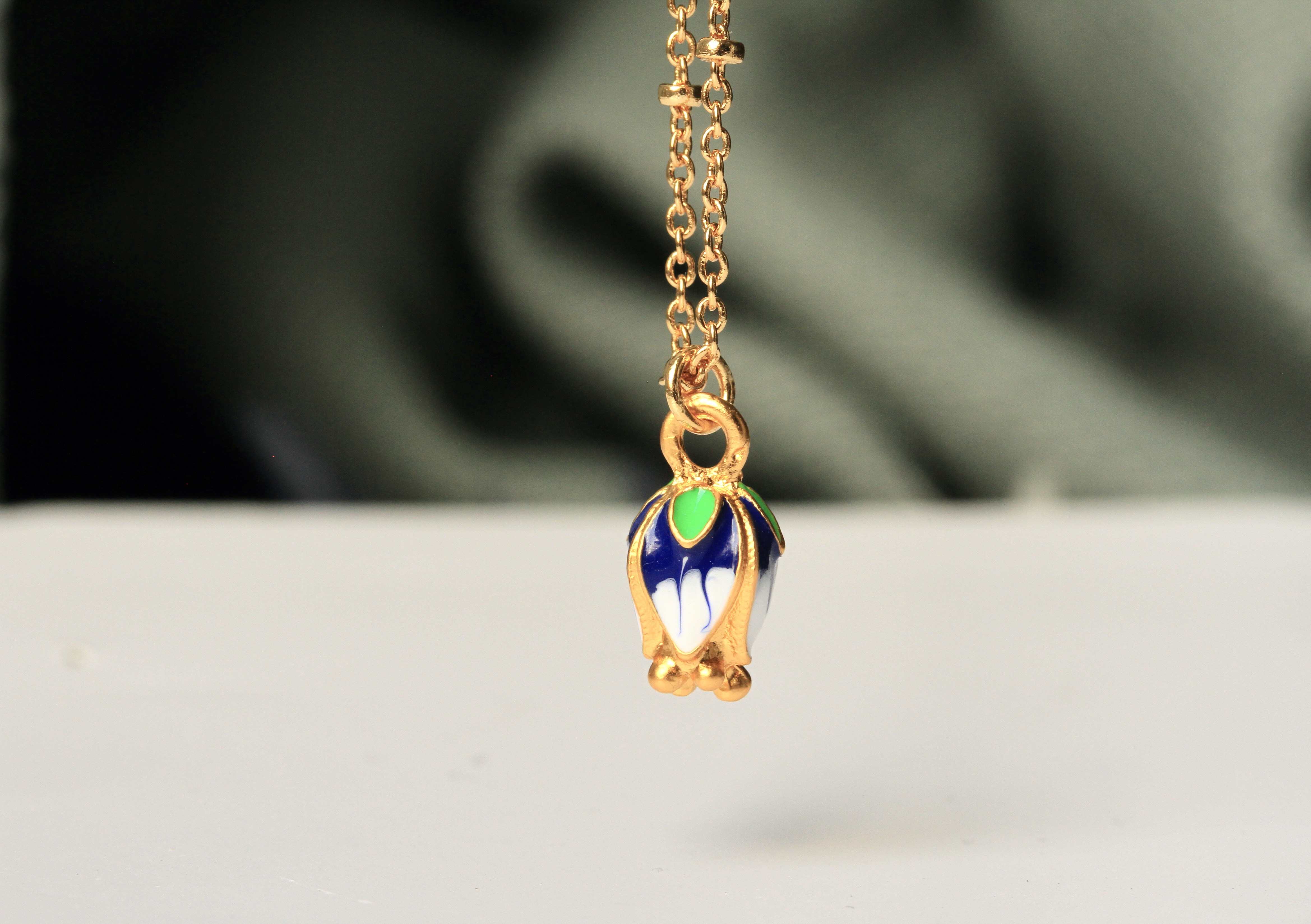 An einer kurzen echt vergoldeten Kette mit kleinen Kugeln baumelt eine bezaubernde Blütenknospe mit feinen Details und mit verschiedenfarbiger Emaille verschönt. Der Charm in Form einer Blüte ist das perfekte Geschenk zum Geburtstag, statt Blumen - oder einfach nur als niedlich süßer Anhänger.
