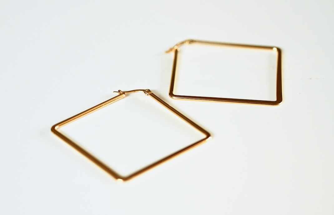 Große Kreolen aus Edelstahl, goldfarben, in Form eines Rhombus. Sehr modisch im aktuellen Trend der geometrischen Formen und unübersehbar schön.