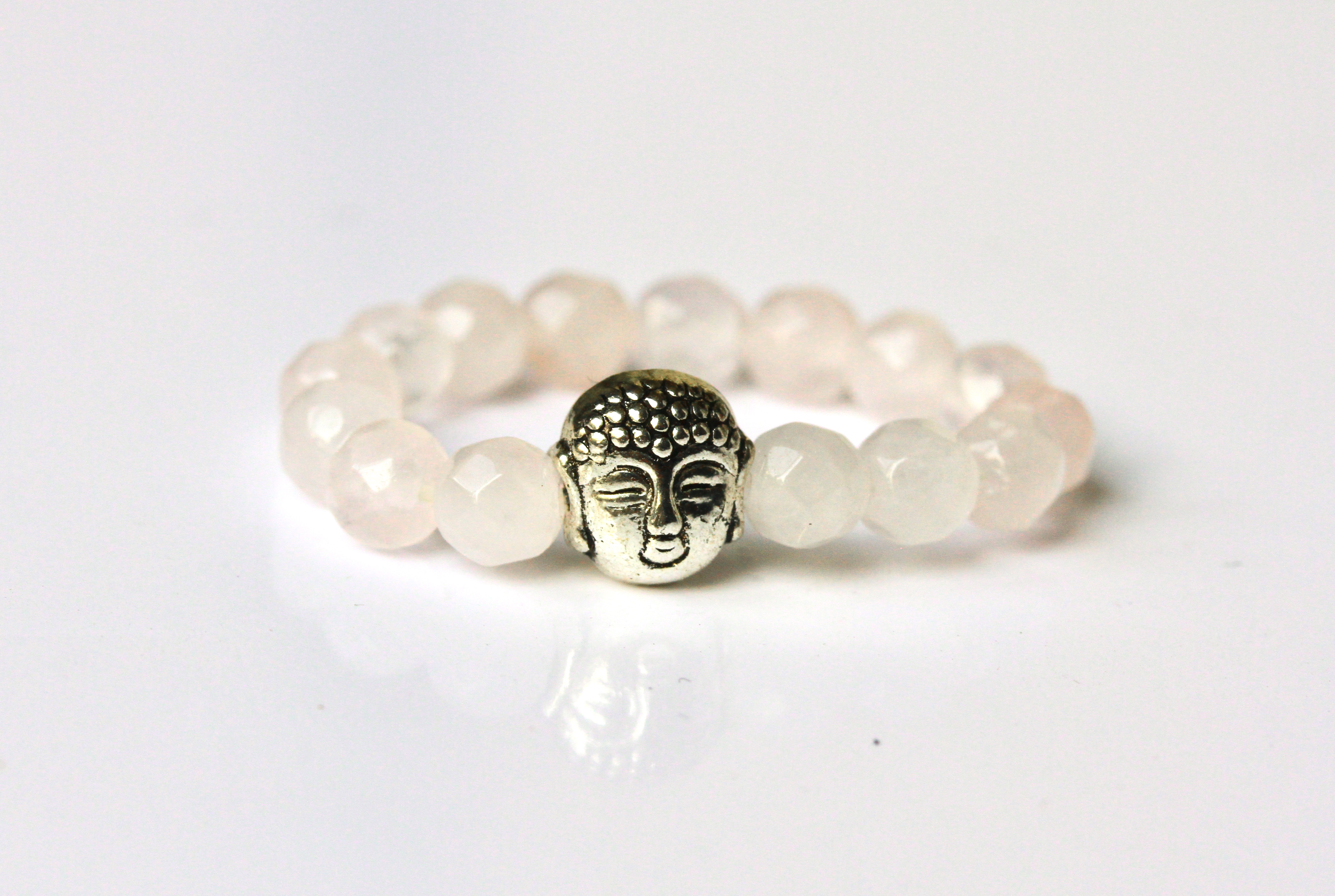 Ring Rosenquarz Buddha als edles Geschenk für Sie mit feinen Edelsteinen ein minimalistischer Ring Stretchring